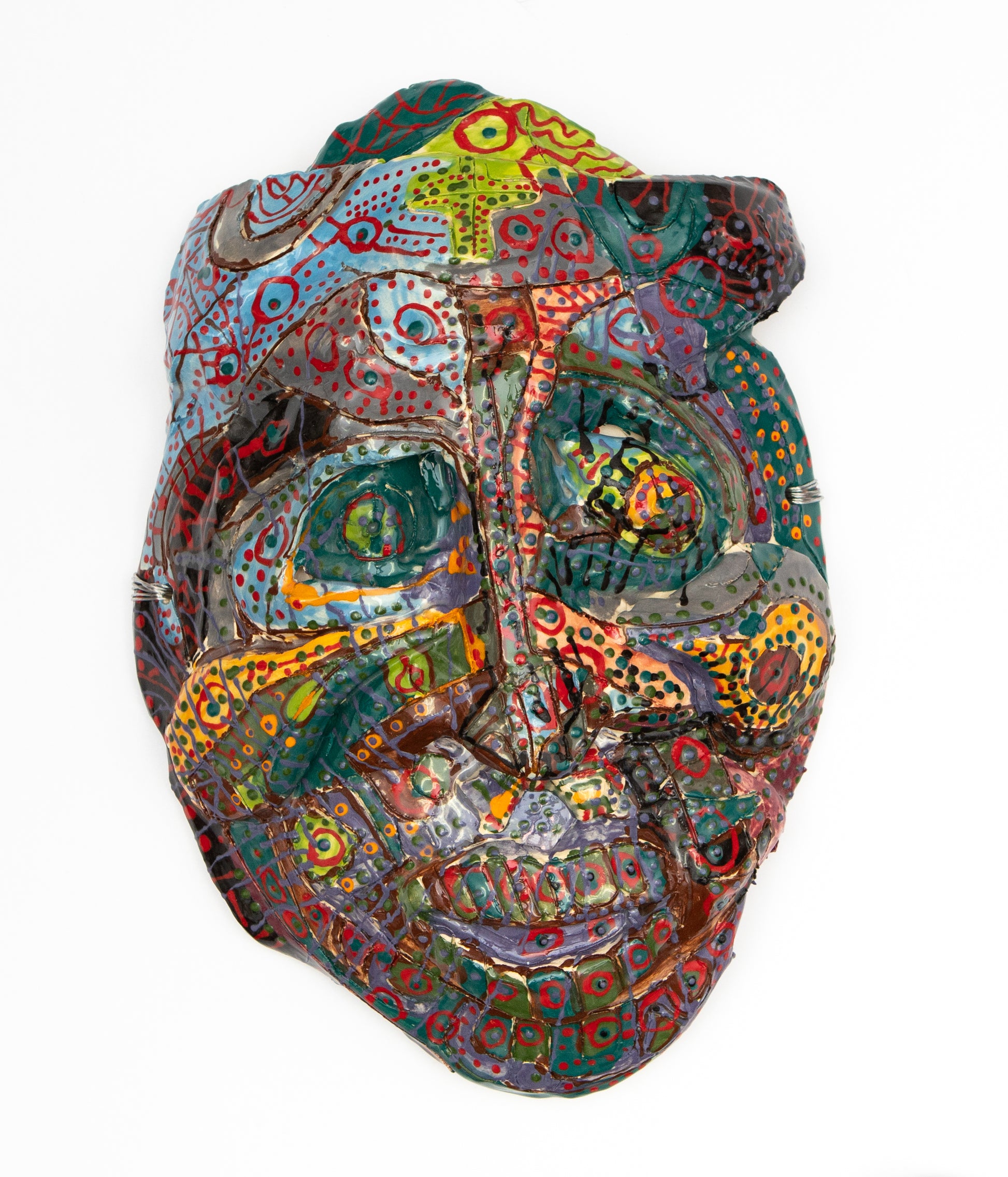 Cedric Johnson is a multidisciplinary artist who works with a wide range of media, from wood and textiles to ceramics and printmaking. Johnson is adept at combining vibrant palettes with intricate linear patterns when working two-dimensionally in drawing or painting, and three-dimensionally, when sculpting ceramic masks. With a particular attention to line, a preliminary abstract shape takes form as he rotates the piece to find emergent shapes within different perspectives. Fractured planes and a Cubist style of portraiture are prominent in most of his work. Despite the abstract nature of Johnson’s work, his titles reference dense and complex original narratives that inspire his practice.